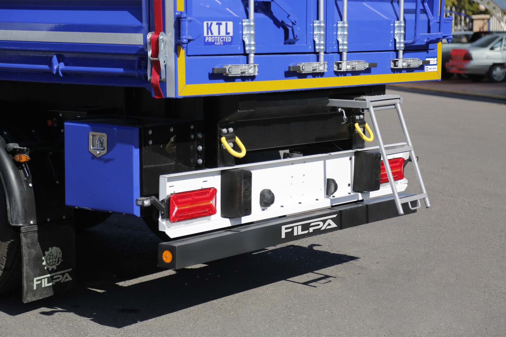 دارای 12 درب بغل و 2 درب عقب و پانل جلو به ارتفاع 90 میلیمتر با قلابهایی برای بستن چادر برروی دربها